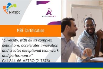 We are beyond excited to announce AstroHire recently (2023) advanced our Diversity vision and completed a comprehensive third-party vetting for National certification as a Minority Business Enterprise (MBE) by the National Minority Supplier Development Council Inc.® (NMSDC.org).